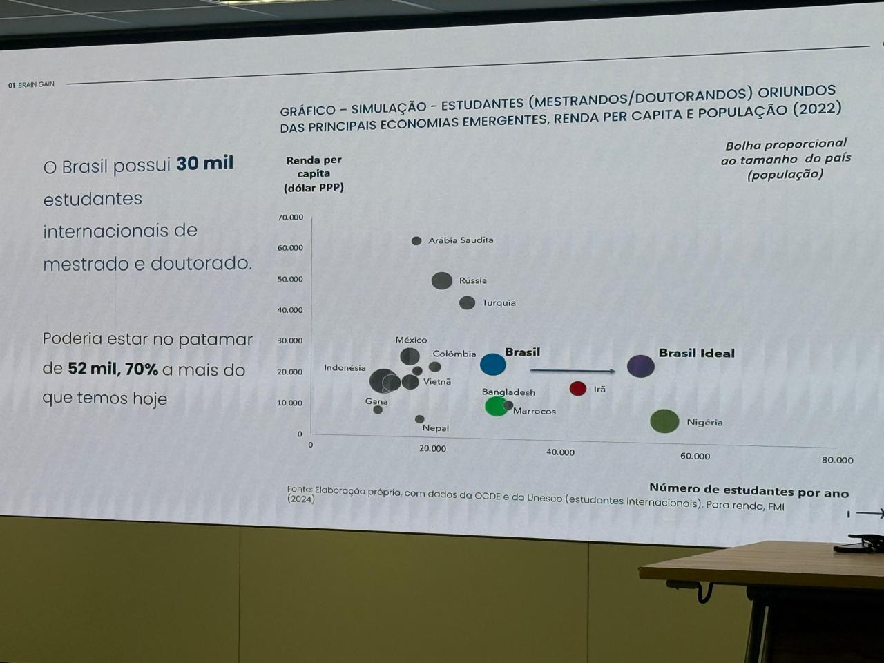 Segundo dados apresentados pelo Instituto Trajetórias, o Brasil possui, atualmente, 30 mil estudantes internacionais de mestrado e doutorado. Porém, considerando o tamanho da população do país, poderia ter 70% de estudantes a mais do que tem hoje.