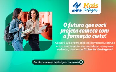 Com o Clube de Vantagens da ANFIP, você projeta o seu futuro e garante economia e qualidade para sua formação! Aproveite descontos de até 73% em instituições de ensino superior e escolha entre diversos cursos de graduação, pós-graduação, cursos de extensão, dentre outros, com condições exclusivas e pagamento facilitado. Consulte aqui condições disponíveis e evolua…