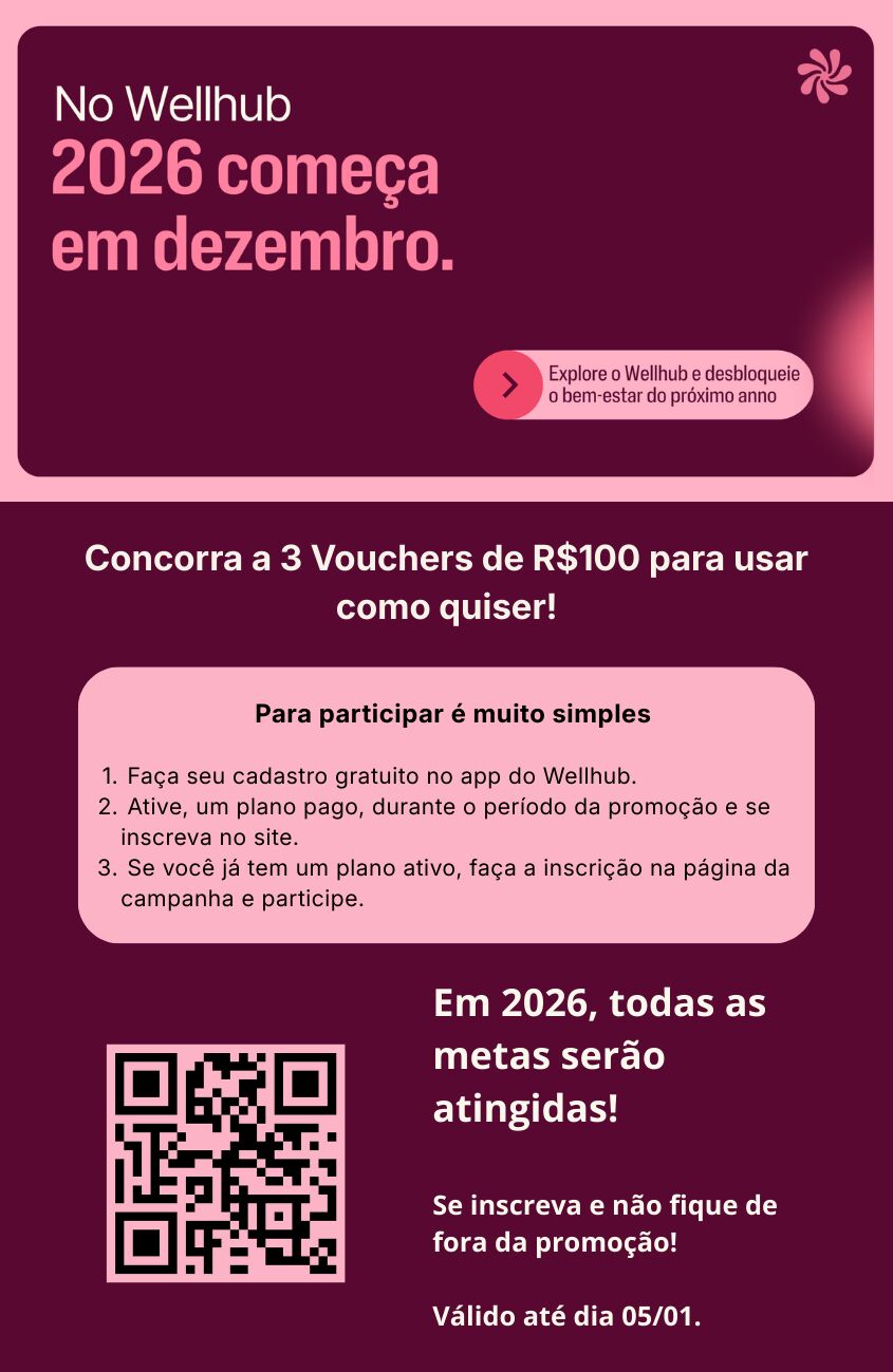 Para participar, baixe o aplicativo do Wellhub no seu celular, faça o cadastro, ative o seu plano e inscreva-se na promoção (acesse aqui).